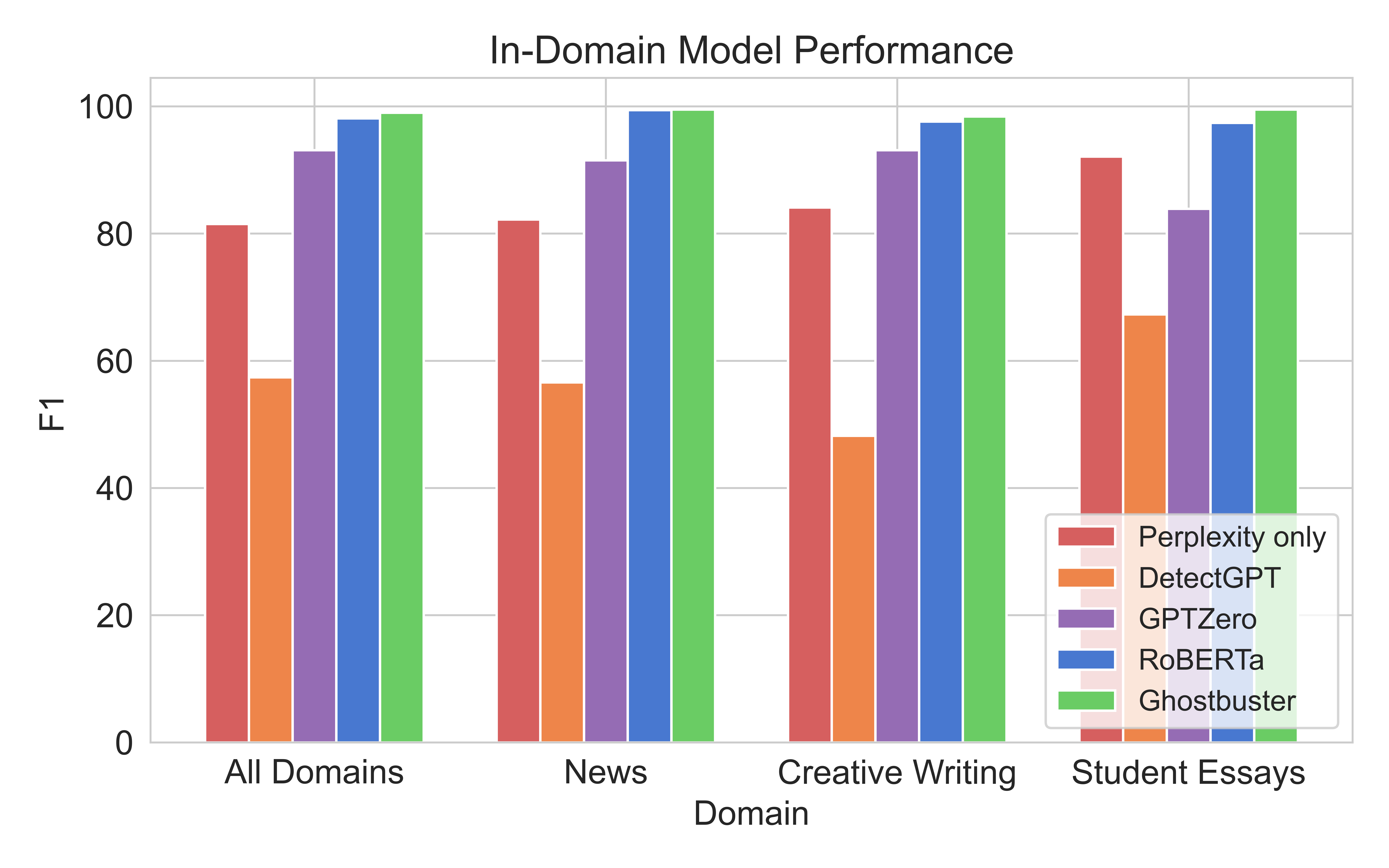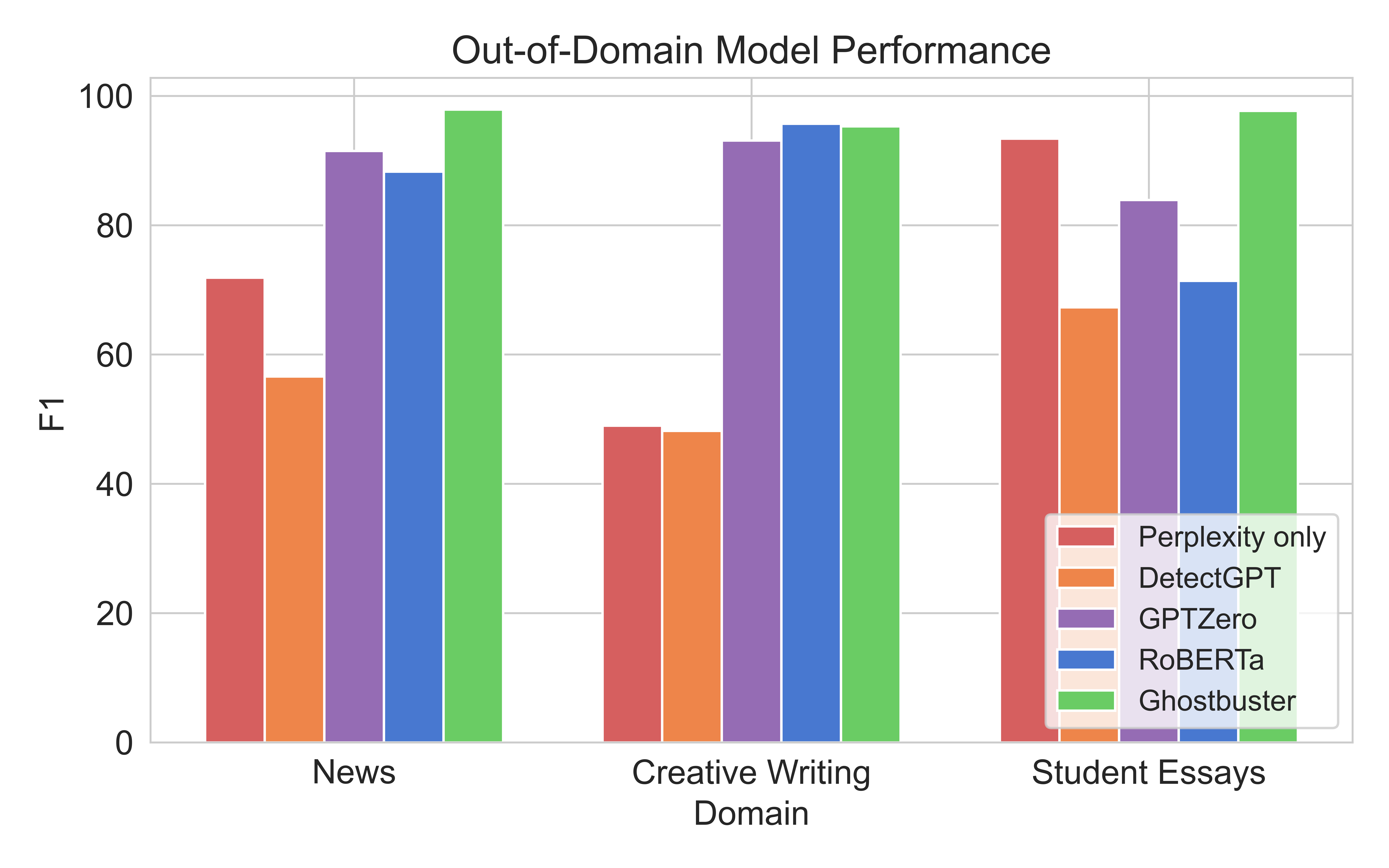 Results on Ghostbuster's in-domain and out-of-domain performance.