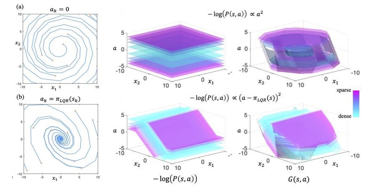 To use an LDM in control, we can train an LDM and learning-based controller on the same training dataset and constrain the controller’s action outputs with an LDM constraint ($G(s, a)) leq -log(c)$). Because the LDM constraint prevents both states with low density and “irrecoverable” states, the learning-based controller will be able to avoid out-of-distribution inputs throughout the agent’s entire trajectory. Furthermore, by choosing the cutoff density of the LDM constraint, $c$, the user is able to control the tradeoff between protecting against model error vs. flexibility for performing the desired task.